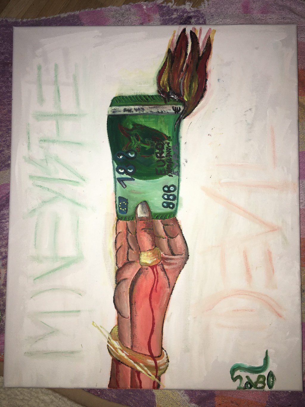 In addition to praise and recognition for her work, the artist is also occasionally confronted with criticism or a lack of understanding. For example, when she uploaded a video to the Instgram platform last year in which a supposed 100-euro bill was burned. She should rather have donated the money, was one comment under the post. Bauer immediately clarified: „I have far too much respect for poverty and the daily work with which money must first be earned and would therefore never destroy real money.“ Much more, she wanted to draw attention to one of her works that shows his such a scene – and to capitalism, which she criticizes: „It should show how much we are often taken by money and how much we actually run after it“ That is also what she likes so much about art in general:“ Art can address things, can shake people up and make them think“. The artist was able to set a milestone just a few weeks ago: Two of her works were shown to an international audience at the „Athens Open Art“ exhibition in the Greek capital. But those who prefer to hold Bauer’s works in their own hands can even order cell phone cases. Meanwhile, Verena Bauer does not yet know one hundred percent where she wants to go professionally, but she knows one thing for sure: „I want to give my life to art!“